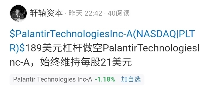 167美元平仓掉五分之一仓位PalantirTechnologiesInc-A做