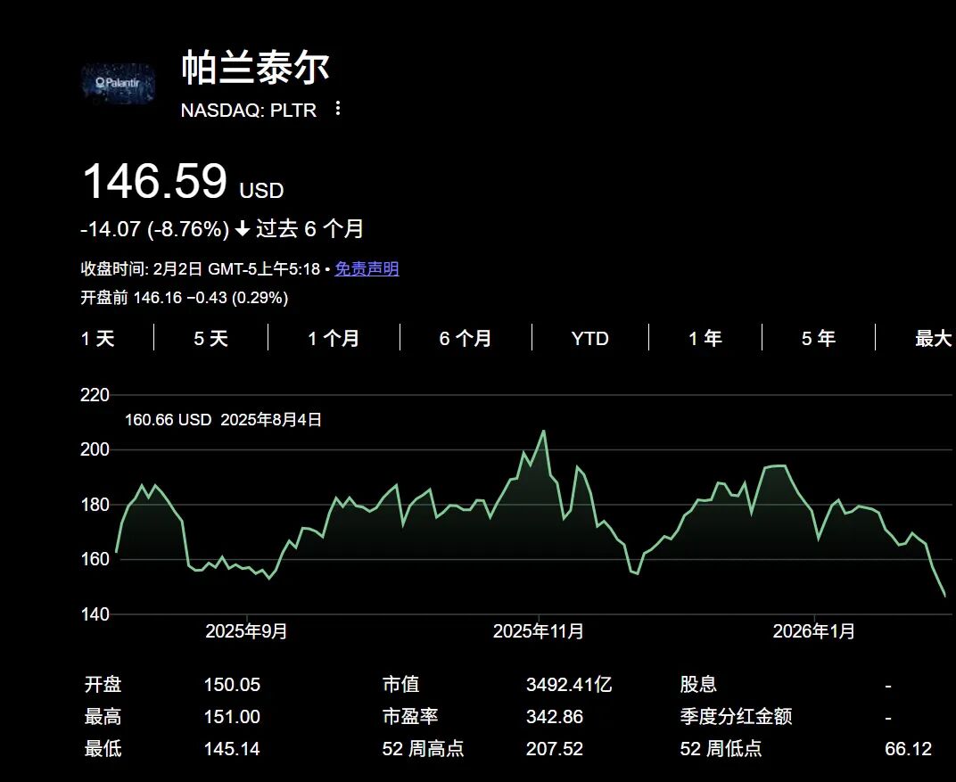 2026年初,帕兰泰尔等一众软件股表现疲软。随着人工智能投资者的关注点更多转向硬件制造商和芯片类股票,帕兰泰尔股价已较去年11月初财报前创下的历史高点下跌近30%。