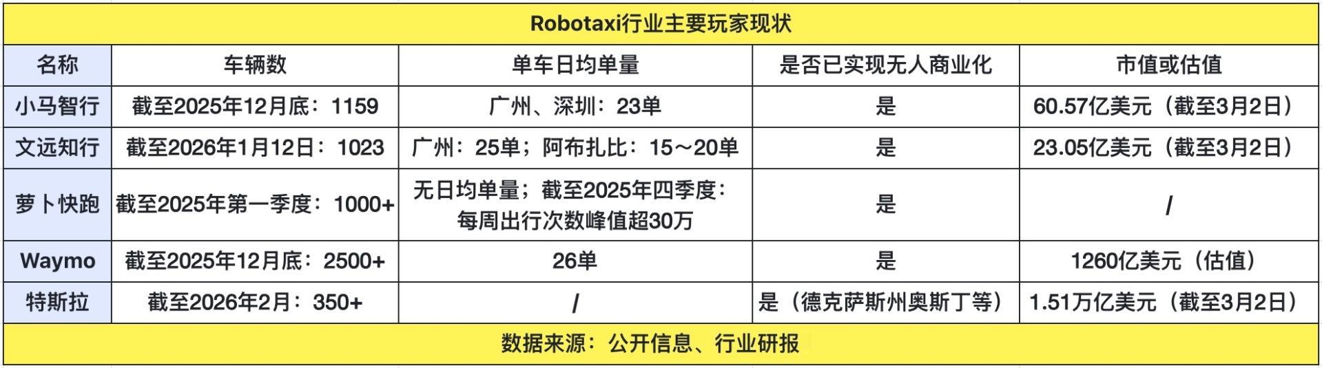 从更广阔的行业视角来看,头部玩家的盈利突破正在加速到来。百度最新财报数据显示,2025年第四季度,萝卜快跑在全球完成340万次Robotaxi服务,同比增长209%,连续7个季度实现环比增长,当季周订单峰值超过30万单。2025年第二季度,其已在武汉实现单车盈亏平衡。与此同时,文远知行预计将于2026年一季度在阿布扎比实现单车盈亏平衡。