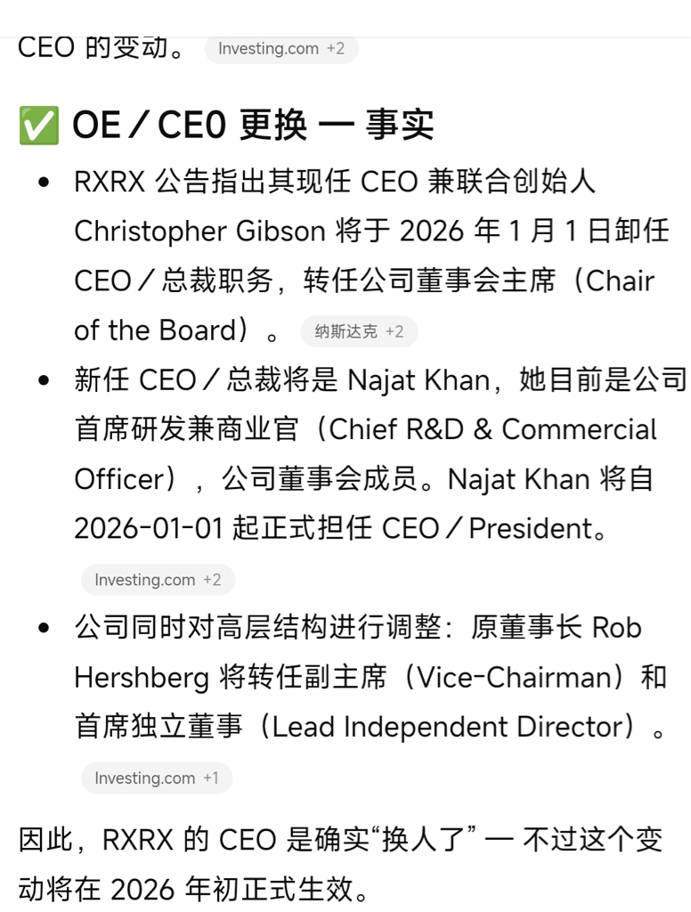 $Recursion Pharmaceuticals Inc-A(NASDAQ|RXRX)$ 吹牛批的CEO2026年1月1日卸任