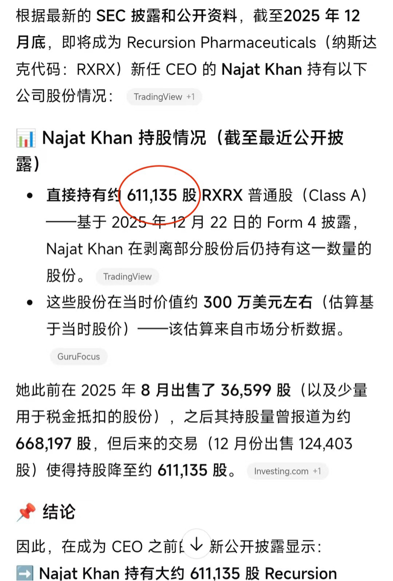$Recursion Pharmaceuticals Inc-A(NASDAQ|RXRX)$ 美女CEO近期持股情况