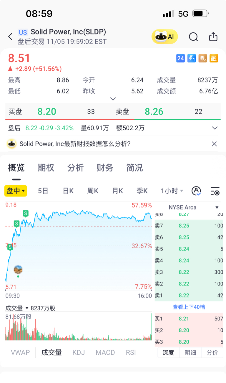 $Solid Power Inc(NASDAQ|SLDP)$ 爽,一晚上50%