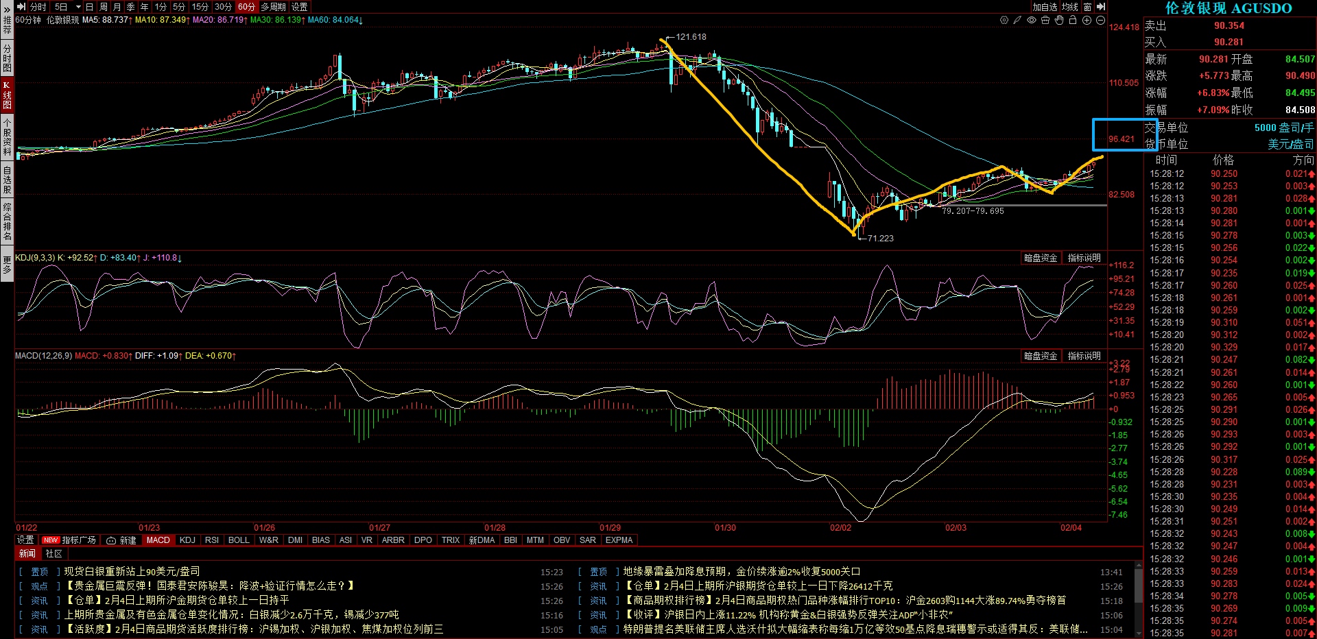 白银的反弹期货快到短期压力位96,这里大概率会是引导下跌,楔形整理,常规走势还有