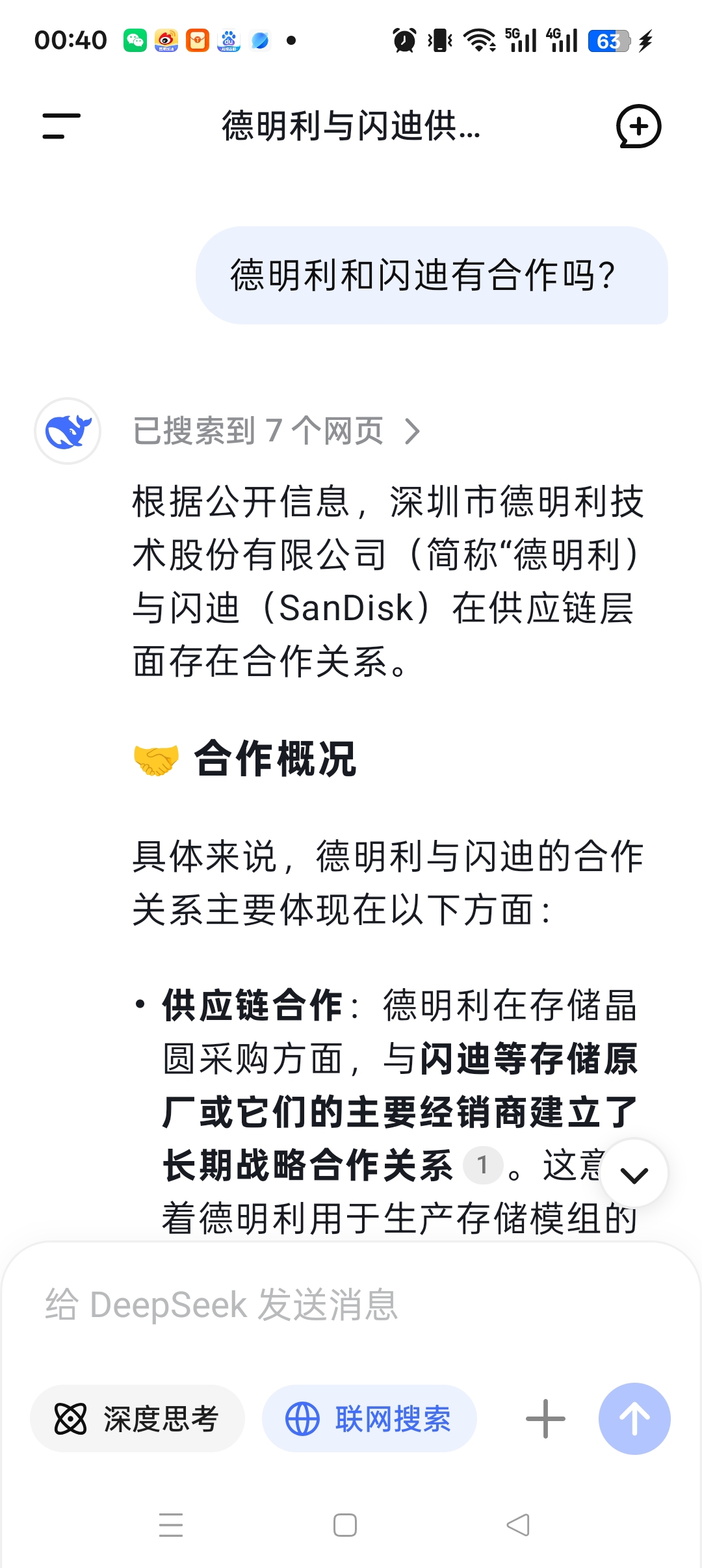 $闪迪(NASDAQ|SNDK)$ 你们自己deepseek一下 只有德明利和闪迪才有合作。