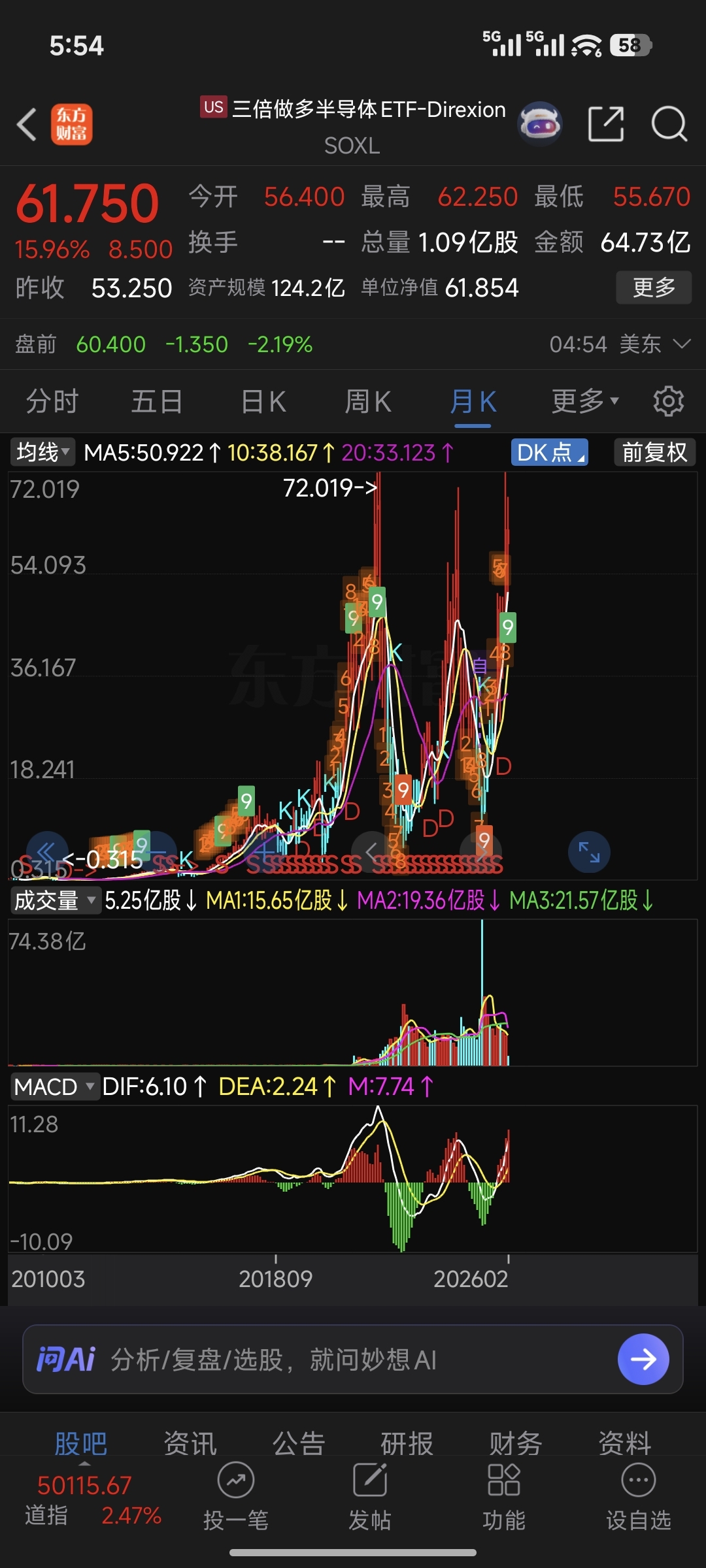 $三倍做多半导体ETF-Direxion(AMEX|SOXL)$ 或许还会冲高,但顶部临近。起码没有前期那么淡定了
