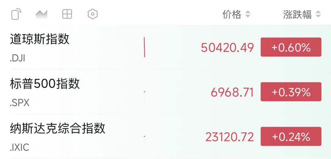 当地时间2月12日(周四),美股三大股指集体高开,截至发稿,道指涨0.6%,标普500指数涨0.39%,纳指涨0.24%。