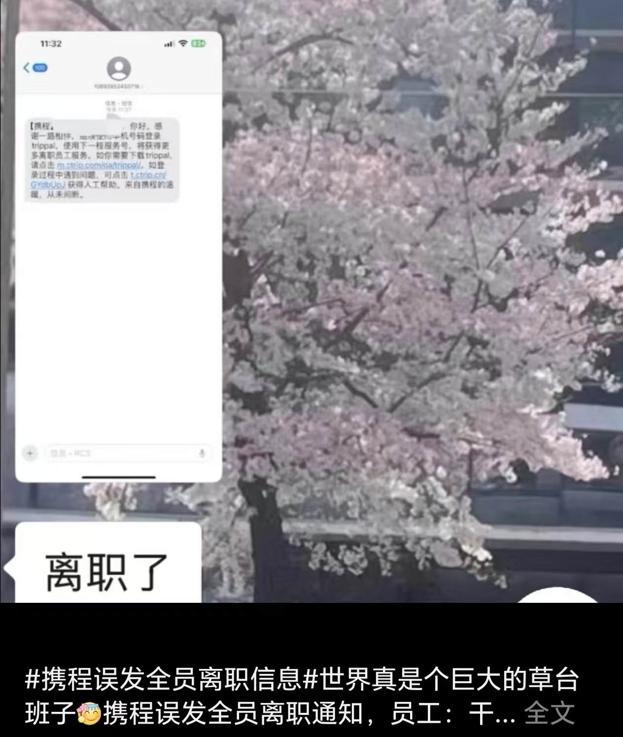 对此,携程内部知情人士表示,“实际情况是二级部门失误,短信发给了该二级部门员工,并非全员发送。”此外,误操作的相关员工很自责,团队已为其申请带薪假期并赠送解压小礼物,待其心情平复后恢复上岗。