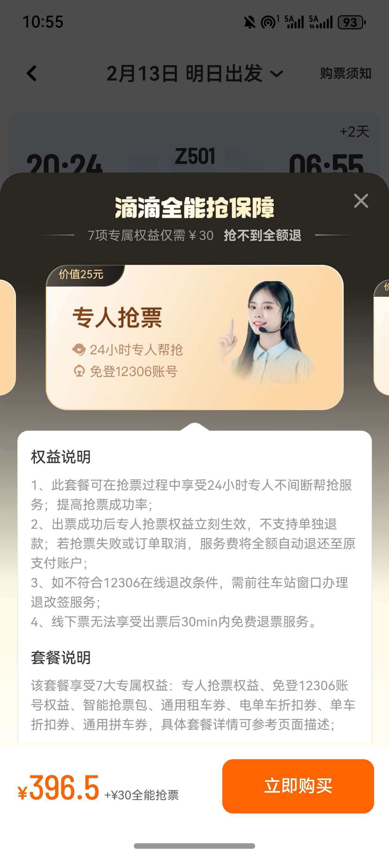 而一些平台所声称的“极速加速”也并不提速。在列车车票售罄后,第三方抢票平台仍声称可为消费者提供10元到50元不等的各种“加速包”,对应200M至1000M不等的“带宽”,声称购买“加速包”后抢票速度更快、成功率更高。事实上在该车次车票售罄的情形下已无票可抢,第三方抢票平台也并未实施抢票行为,根本无法达到加速效果。