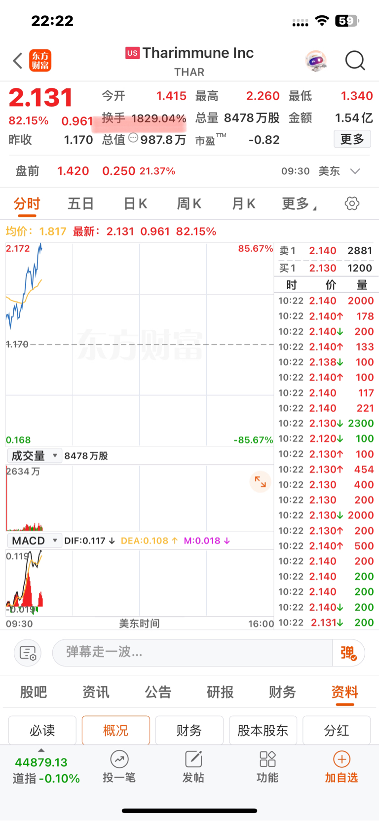 $Tharimmune Inc(NASDAQ|THAR)$ 换手率1829%