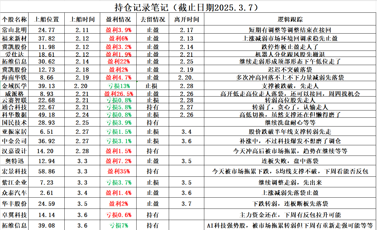 汉嘉设计300746:汉嘉有点冤枉,今天低开高走,的确跟随deepseek概念超跌补涨逆势拉升,但最高冲到5个多点后震荡回落,当时通过观察盘面,我是知道今天冲击3400大概率市场会弱势调整的,估计下周才会重新冲击整数关口,我也在盘中留言和大家说了涨幅4个多点左右高位可以适当减仓,回落后接回T,这样锁定了拉升的利润,短线稳健的可以做这个运作,收盘后果然被拖累回调了,不过该股10均线支撑不远依然向上运行,位置不高,而且deepseek概念下周还会继续活跃爆发,给冲击3400做推动,T了最好,没T也耐心等等。