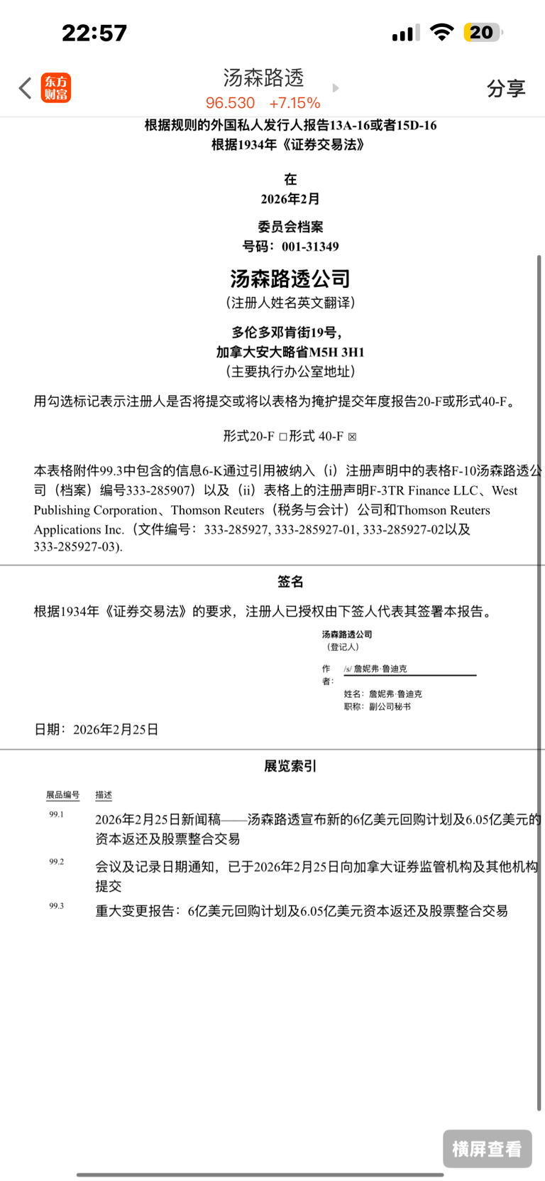 us 汤森路透6亿美元回购股票 牛