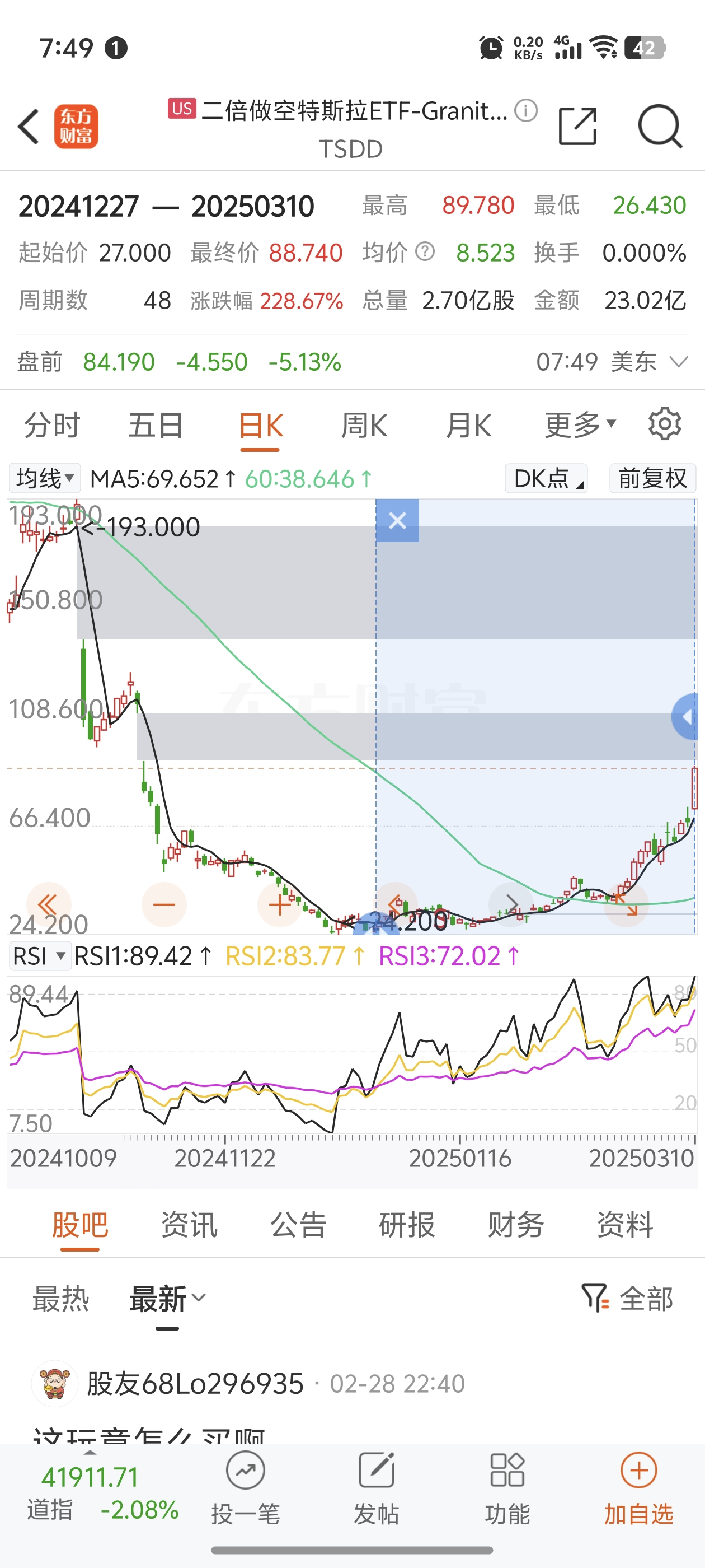 $二倍做空特斯拉ETF-GraniteShares(NASDAQ|TSDD)$ 牛逼,三个月涨这么多