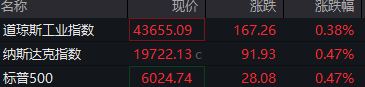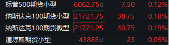 道指期货涨0.05%,标普500指数期货涨0.12%,纳指期货涨0.19%。