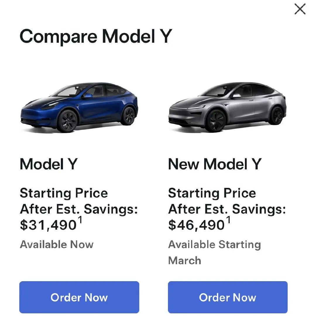 此前,特斯拉于1月10日在其中国官网上线焕新Model Y。新推出的焕新Model Y有后轮驱动首发版、长续航全轮驱动首发版两个版本,起售价分别为26.35万元、30.35万元,预计今年3月开始交付。