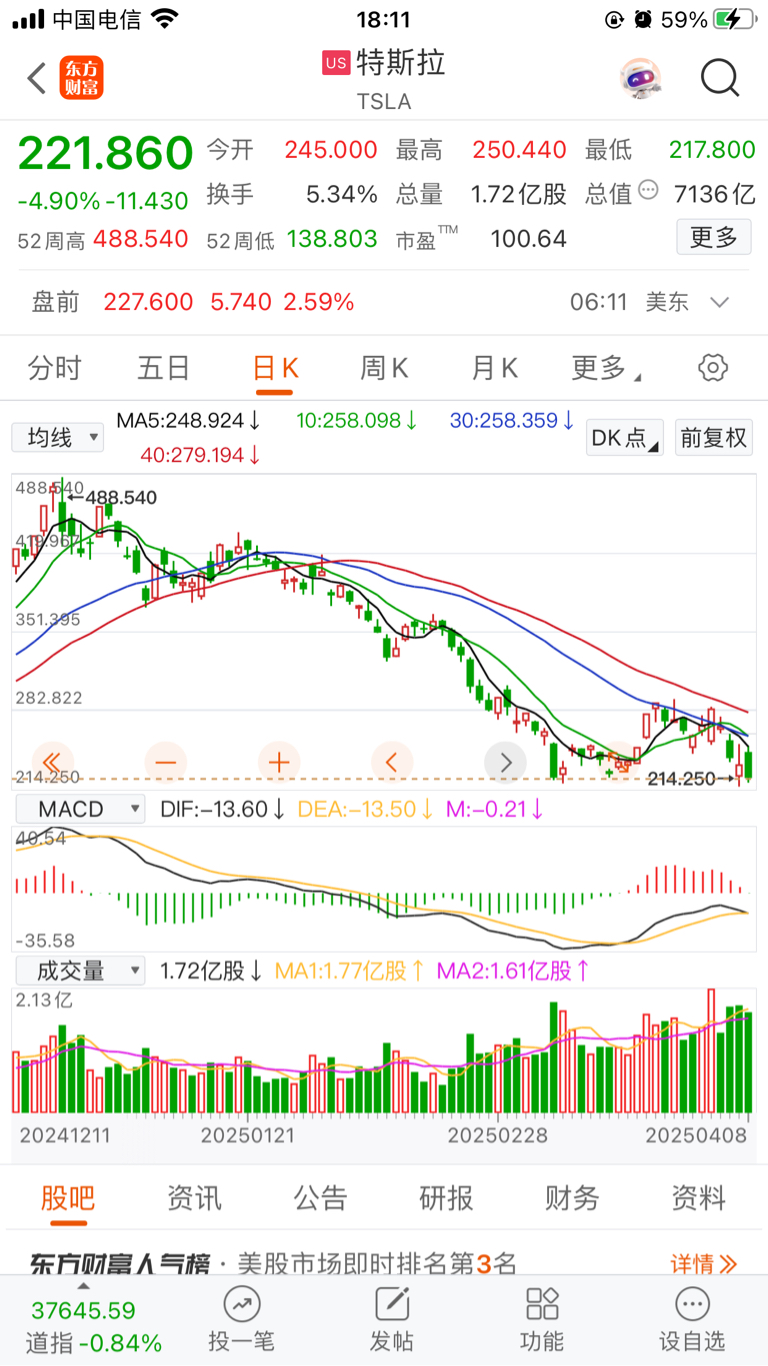 $特斯拉(NASDAQ|TSLA)$ 股价打五折了?#收盘点评# #炒股日记# #复盘记录# #投资干货#
