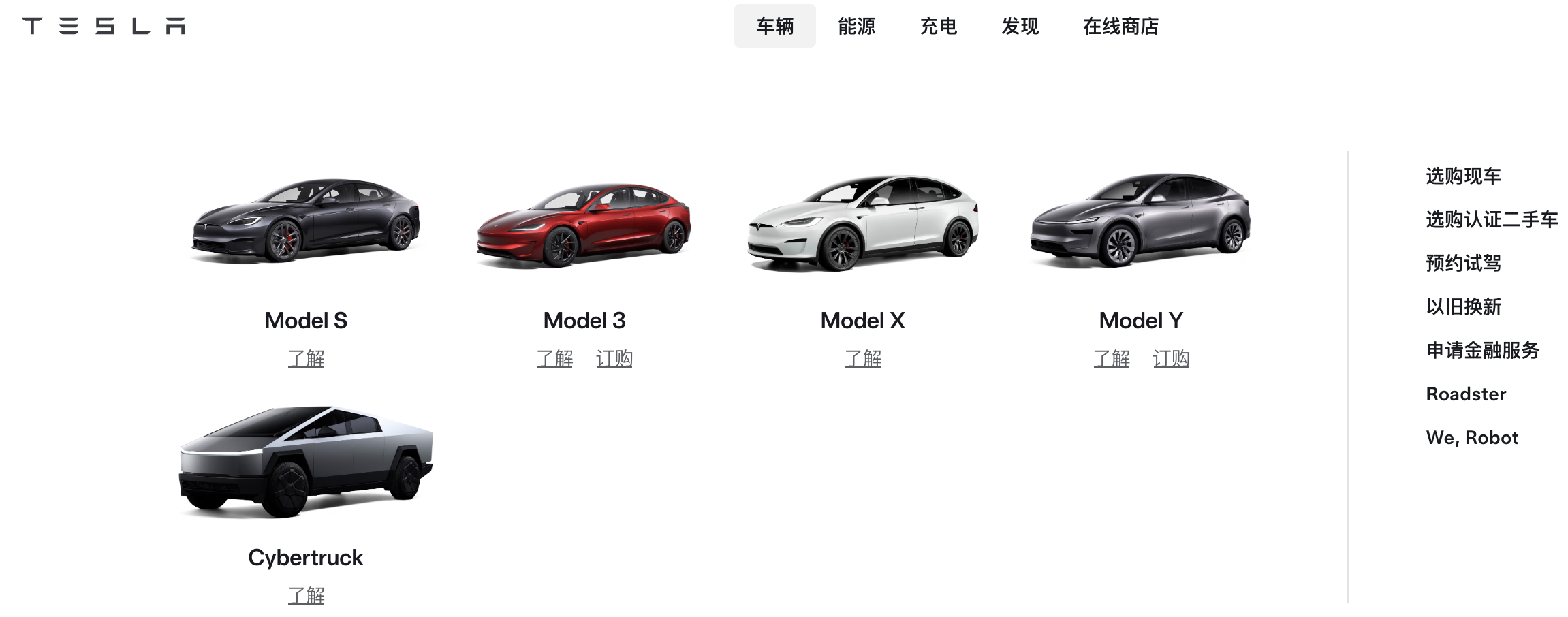 4月11日,特斯拉中国官网显示,目前特斯拉Model S与Model X车型已不再提供单独的“订购新车”选项,目前相应车型页面中仅显示有“了解”按钮,点击后显示“查看现车”的选项,而Model Y与Model 3则依然显示“订购”选项。