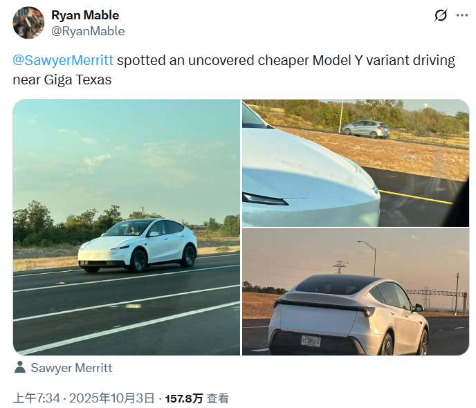 周一特斯拉也大涨5.45%,公司在社交媒体上连番预告10月7日将有新品发布。社交媒体上也有美国网友爆料称,在特斯拉得州工厂附近目击到没有覆盖伪装的“平价版Model Y”。