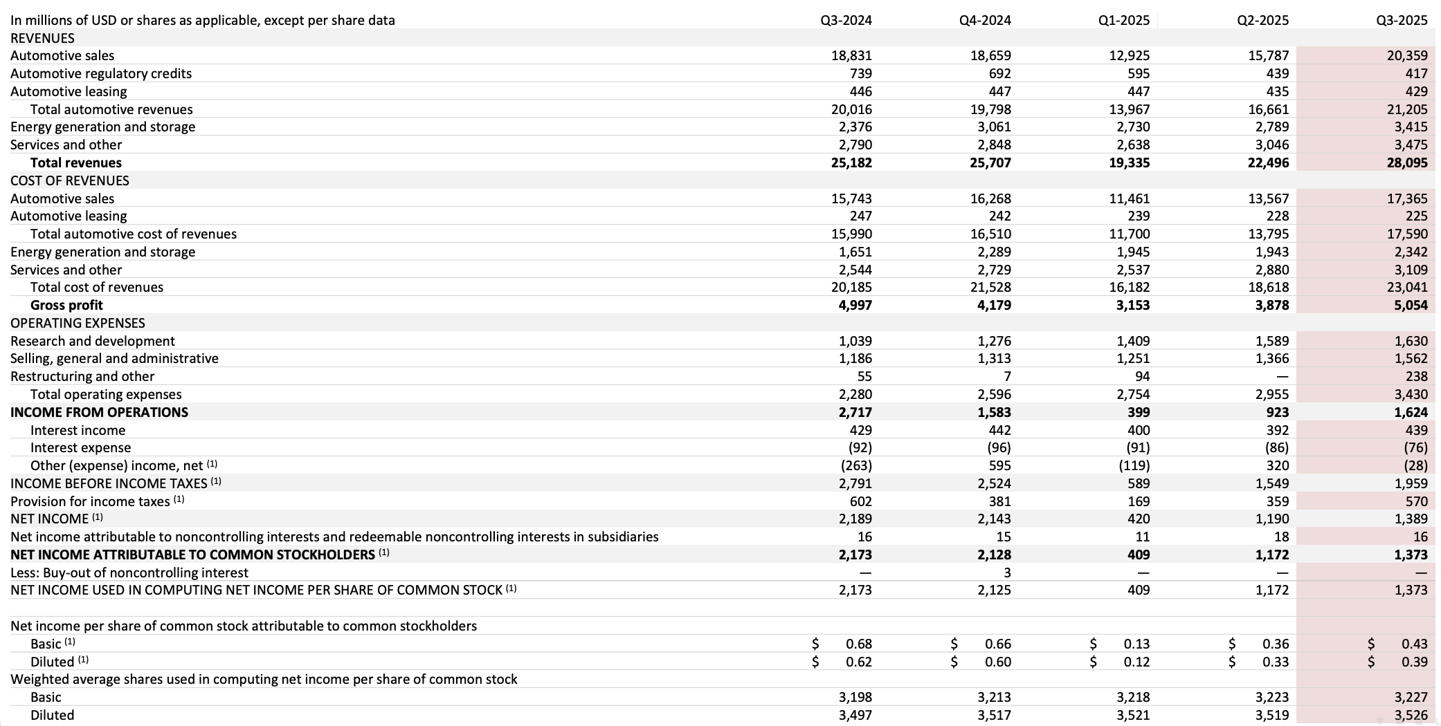 北京时间10月23日,特斯拉发布的2025年第三季度业绩显示,公司第三季度营收280.95亿美元,创下季度营收新高,同比增长11.57%,超出华尔街预期。