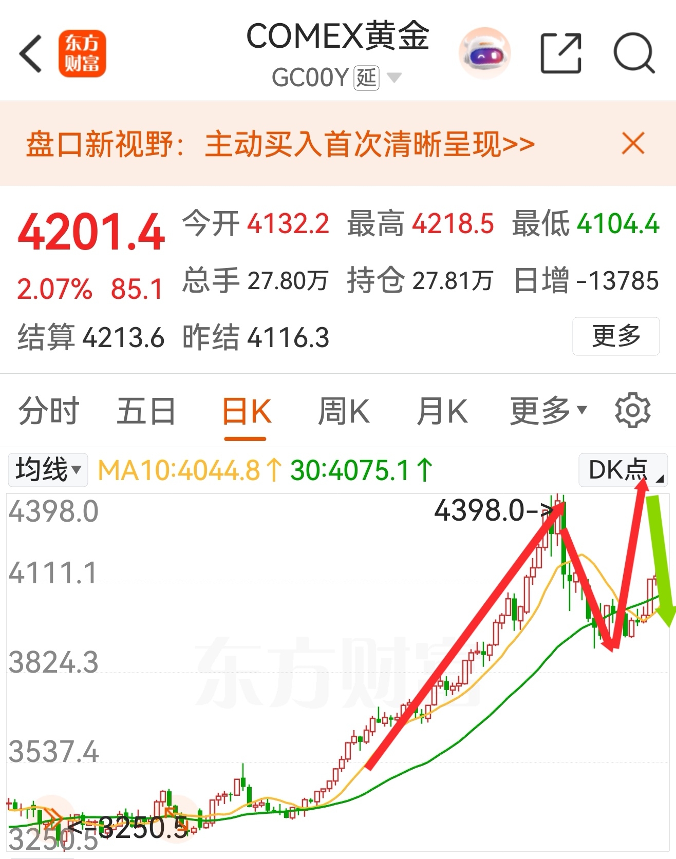 如图所示,后续有望挑战前高4398形成双头,可能会再创新高,然后再破4398。