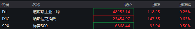 其他科技股中,美光科技一度涨超4%,甲骨文、德州仪器、应用材料等涨超1%;奈飞跌超1%。