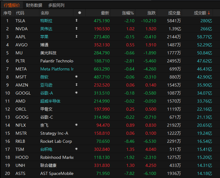 第3名苹果收跌0.15%,成交58.77亿美元。根据公开资料,2025年11月苹果等外资品牌智能手机在华出货量同比飙升128.4%,同期中国整体智能手机市场仅微增不到2%,苹果增速领先行业逾60倍。