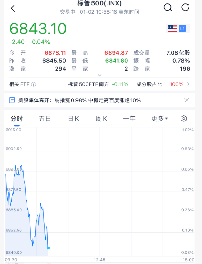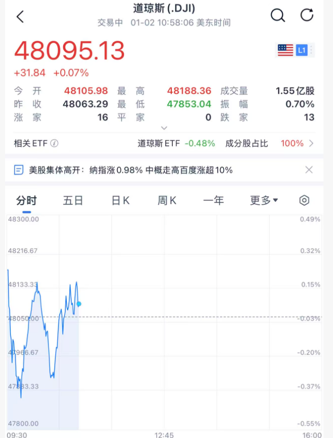 1月2日深夜,美股三大指数盘初追随亚洲市场的脚步,一度大涨。但没过多久,就开启了跳水模式,道指震荡,纳斯达克指数、标普500指数抹去了盘中的涨幅!