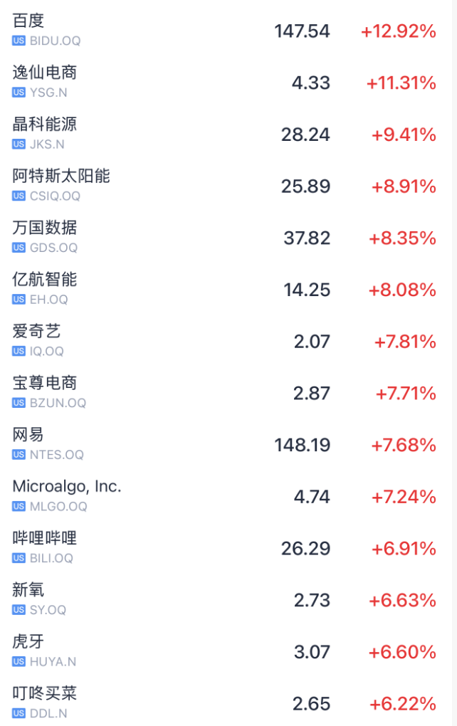 而让人惊喜的是,截至发稿,中国资产始终保持强势,中概股指数依旧维持4%的涨幅,并未受到美股指数跳水的影响。百度涨超12%,子公司昆仑芯已向港交所提交上市申请。