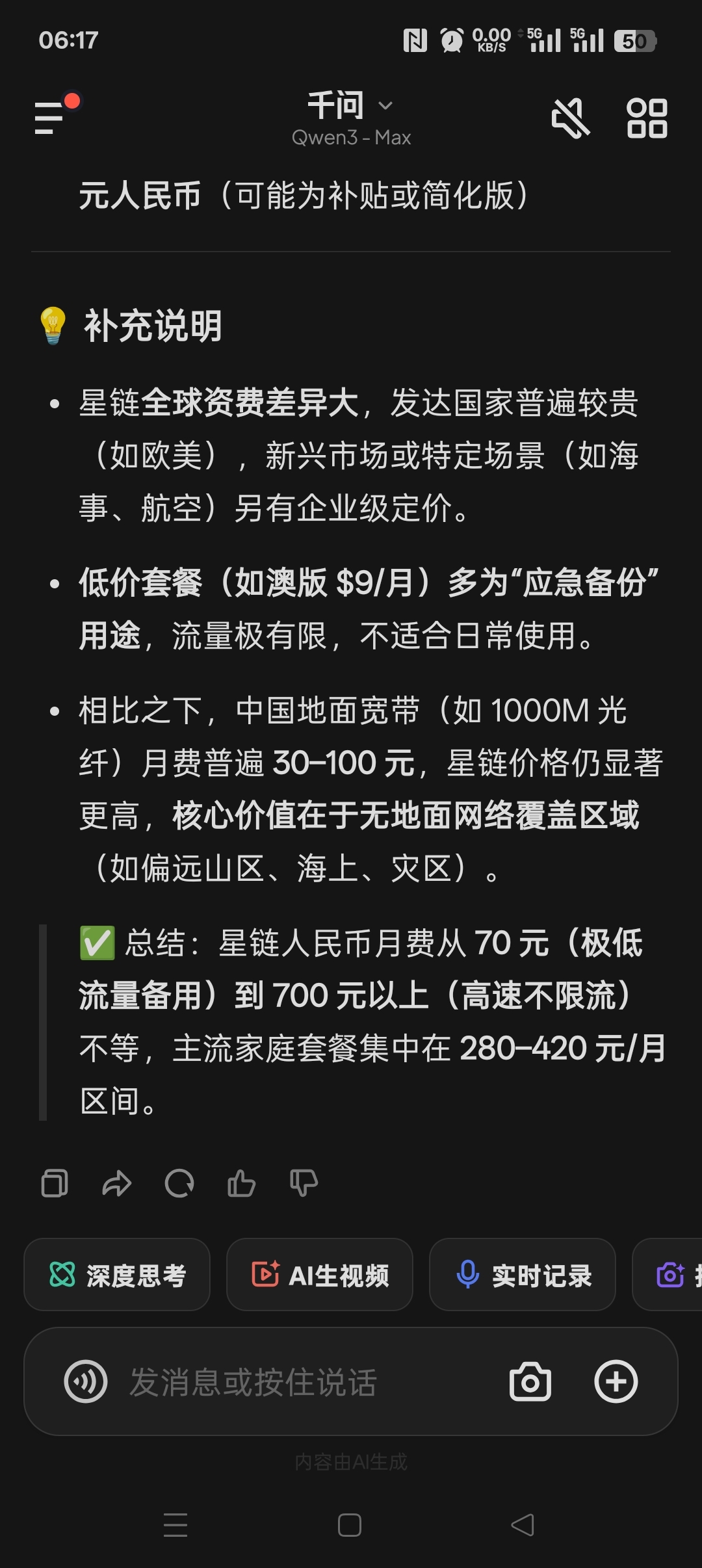 星链最主要功能就是流量使用,平均月费二三百元,中国火箭成本是美十倍,1300颗发