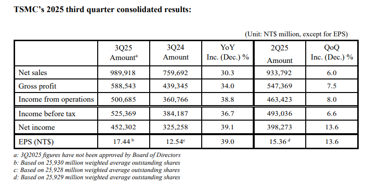 Q3净利润同比增长39%创新高!台积电美股夜盘大幅拉升