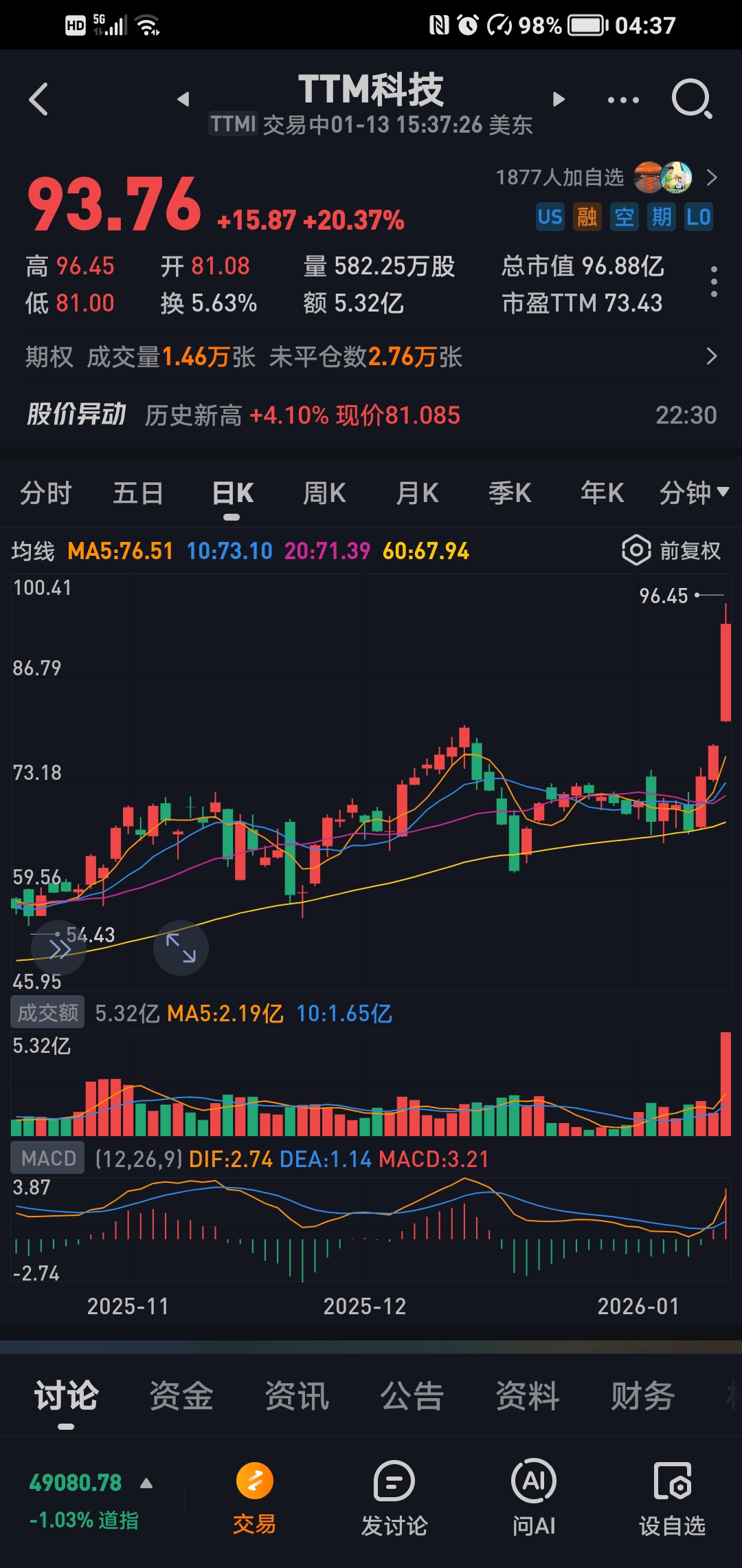 此刻,TTM科技怒涨20%,3天涨幅累计40%,作为正宗的PCB美股,我就不信明
