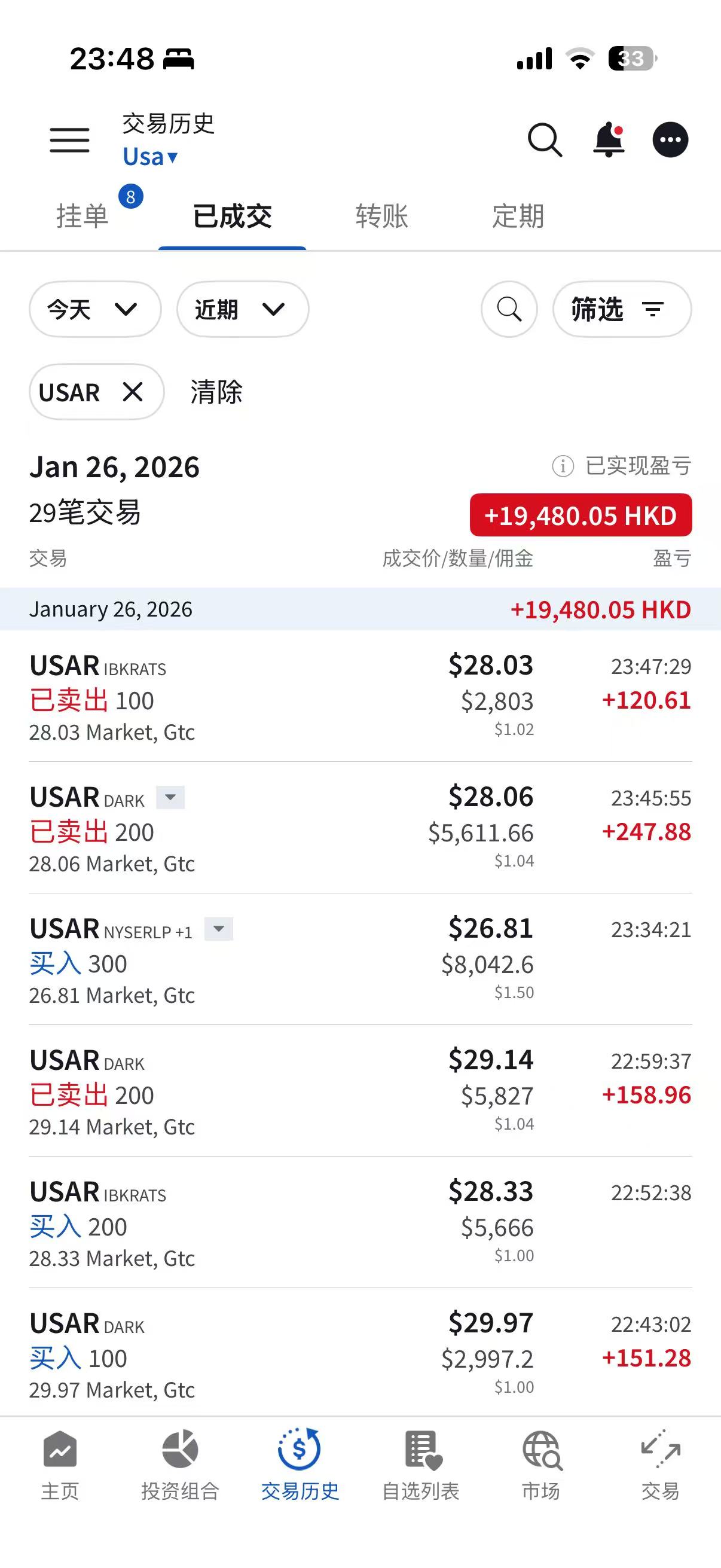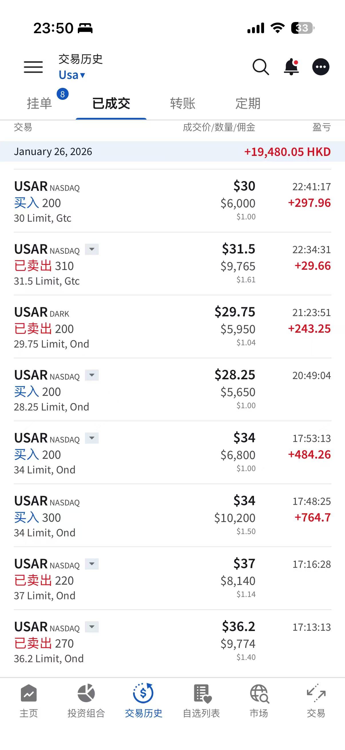 日内操作了几笔,赚2万港币走人。睡觉。盘前的那笔500股空单,多拿会可以多赚3000刀