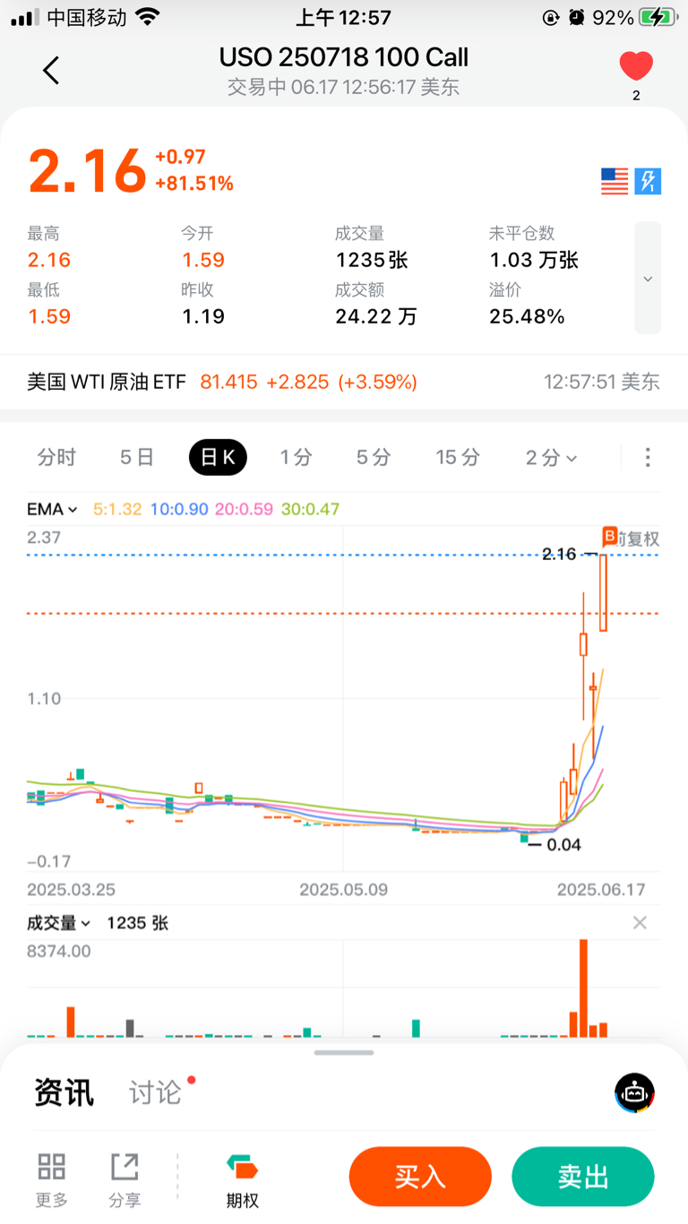 $美国原油ETF(AMEX|USO)$ 冲冲冲! 晚上赚美刀 call call call