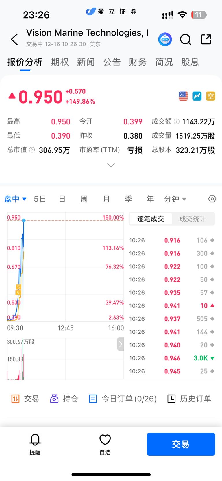 $Vision Marine Technologies Inc(NASDAQ|VMAR)$ 也赚了40个点,可是卖飞了。。。。。