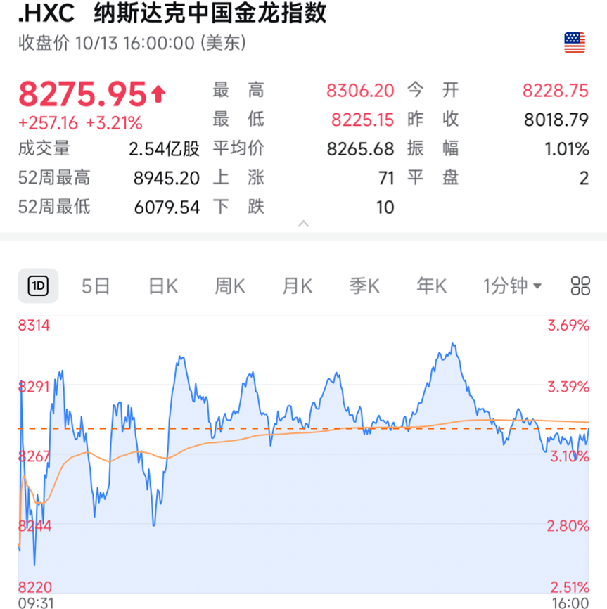 盘面上中概股投资情绪显著回暖,纳斯达克中国金龙指数大涨3.21%。此外,OpenAI宣布与博通达成合作,联合生产其首款自主设计的人工智能处理器后,AI相关科技股再度成为领涨龙头。