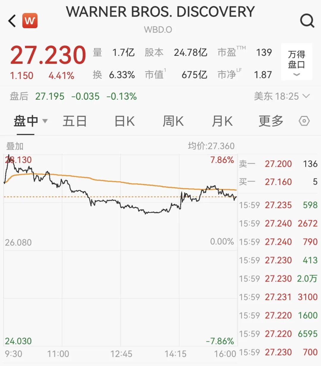 华纳兄弟探索公司上涨4.4%