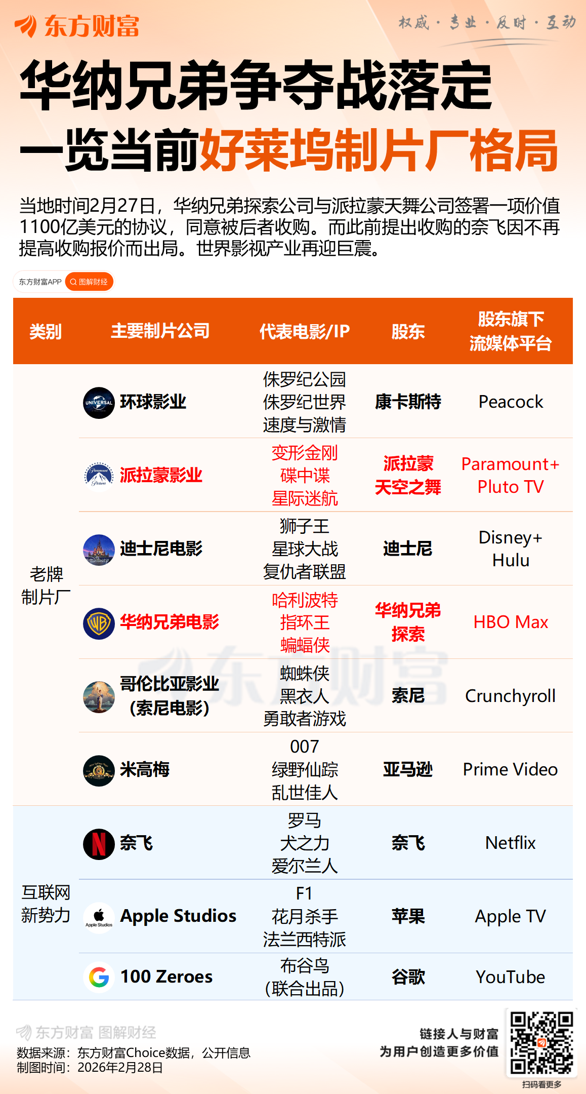 华纳兄弟争夺战终落幕 一图速览当前好莱坞制片厂格局