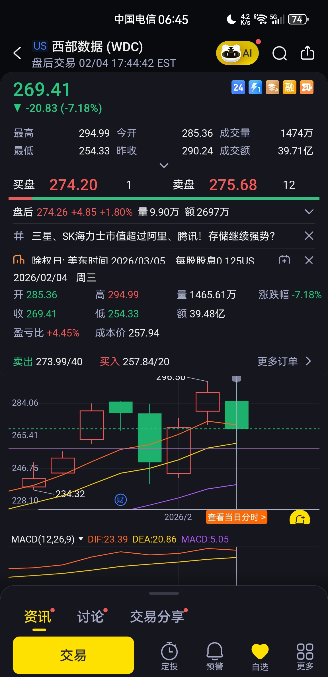 $西部数据(NASDAQ|WDC)$ 大跌就干它一票