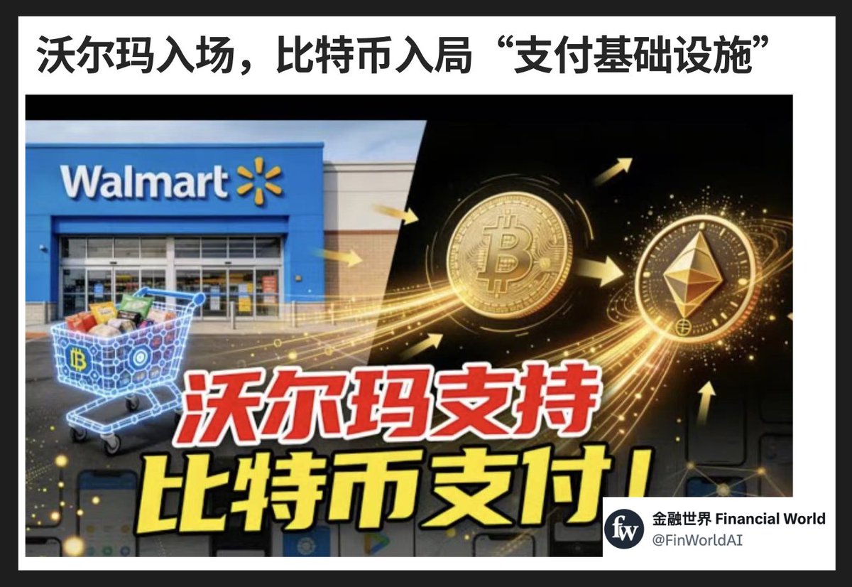 沃尔玛被曝支持比特币等加密资产支付,这并不是一次简单的支付方式扩展,而是全球最大零售商之一,首次在真实、高频、刚需消费场景中,为比特币打开入口。事件本身很清楚:不是投机、不碰炒作,而是把BTC放进结账链路,和信用卡、电子钱包站在同一层级。对比特币的影响,第一是叙事升级。比特币长期被定义为数字黄金或高波动风险资产,而沃尔玛这种量级的商户,意味着BTC开始具备“可用性溢价”,不只是存量资金博弈,而是进入真实经济循环。第二是对加密生态的外溢效应。支付需求会反向推动链上结算、托管、稳定币、合规通道的发展,利好的是整个加密金融基础设施,而不只是BTC价格本身。第三是对传统金融的压力。零售巨头绕开部分卡组织和跨境清算体系,本质上是在测试更低成本、更快结算的替代方案。