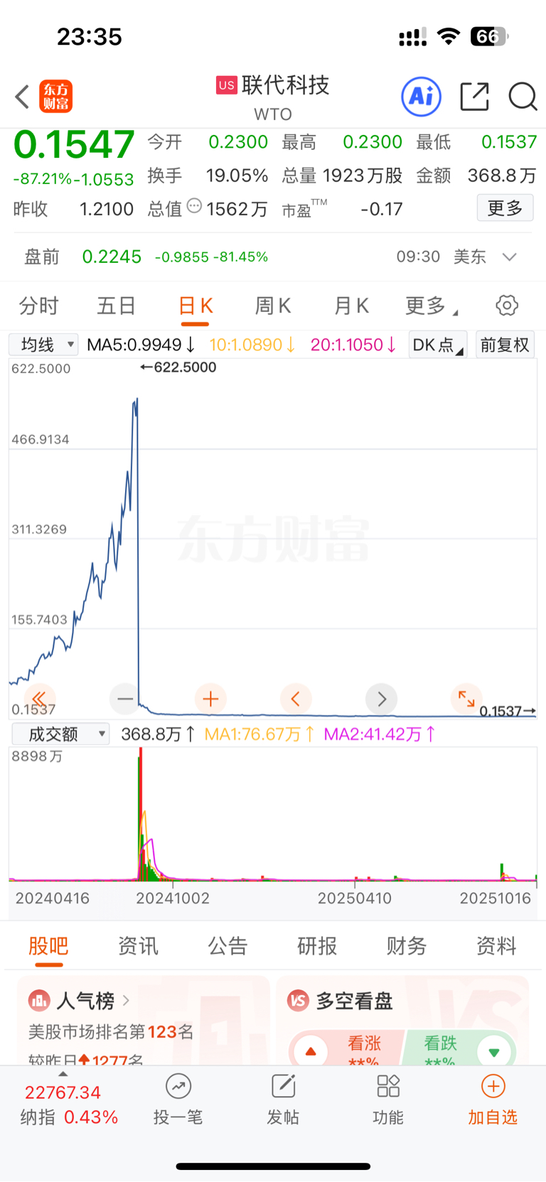 $联代科技(NASDAQ|WTO)$ 美版山高控股!哪里都有老千股!哈哈!$山高控股(HK|00412)$