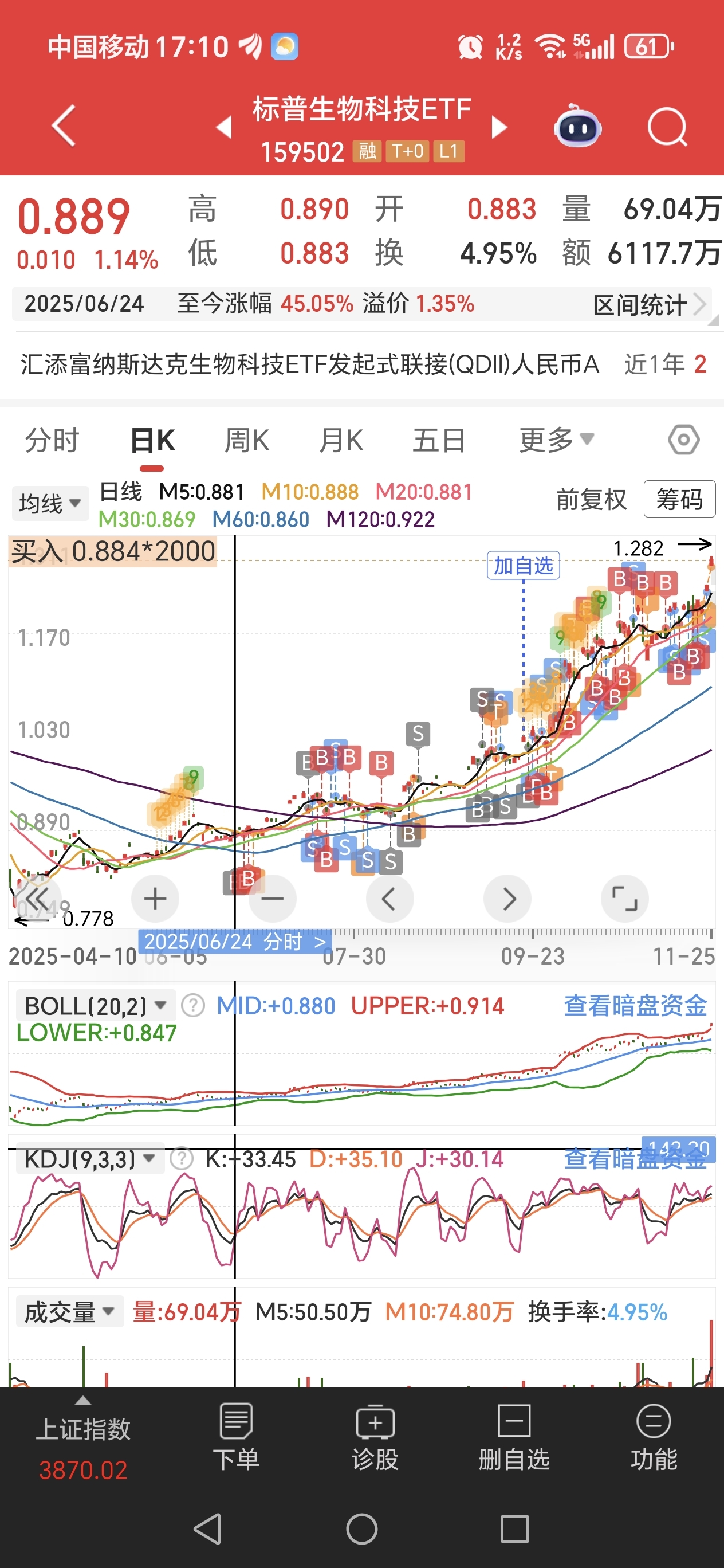 我已不记得是怎么发现标普生物这只基了,我是6月末开始进场,那时候还不到9毛钱的价