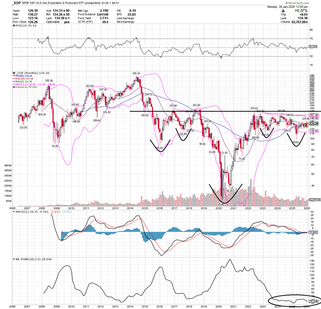 $XOP月度布林带宽度表明,一波爆发性的多年行情即将到来。鉴于许多行业领头羊股票