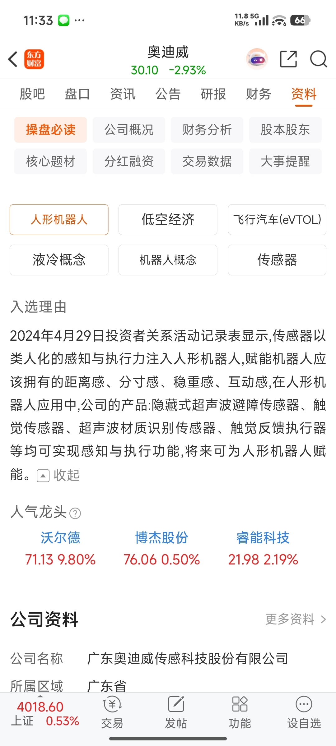 奥迪威参与供应小鹏机器人和无人机还有汽车配套,明天可以看看