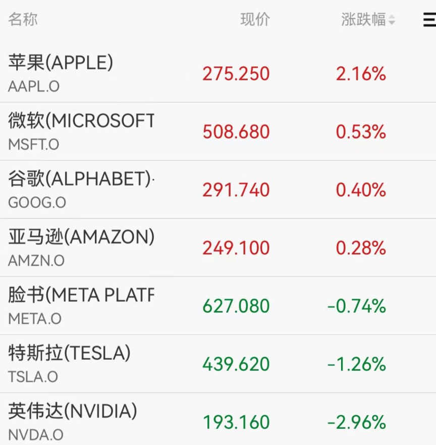 大型科技股涨跌互现,其中,苹果涨超2%,英伟达跌近3%。