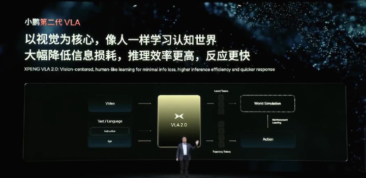 “涌现”盖因训练了庞大的数据,那小鹏又是因为做了什么才能训练如此巨大的数据量?这就要提到第二个“大”——“大模型”,也即小鹏科技日的第二个主角:第二代VLA。