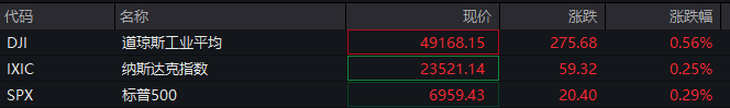 当地时间2月2日,美股三大指数集体低开,随后均集体走高,截至发稿,道指涨幅扩大至超0.5%。