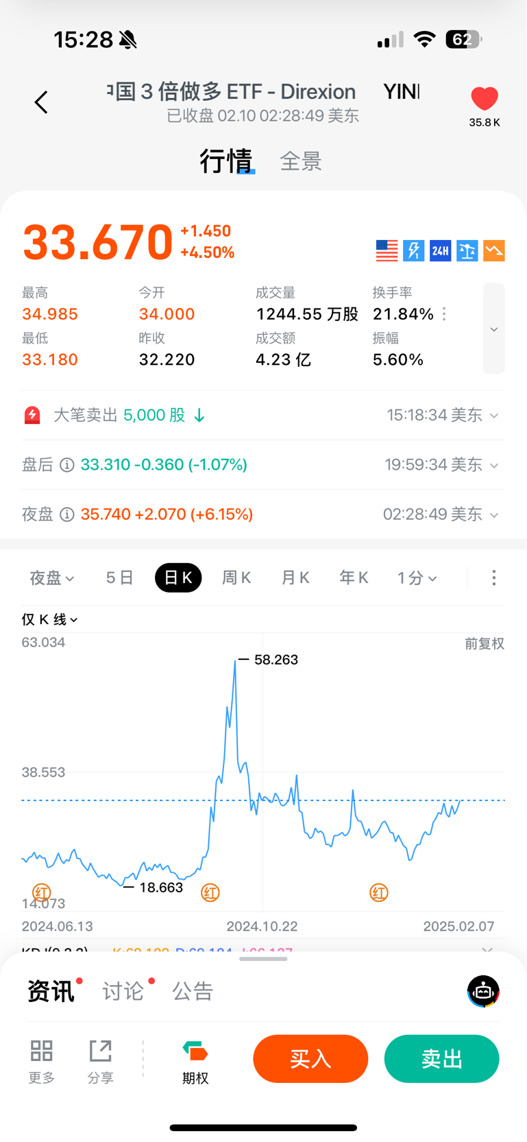 $三倍做多富时中国ETF-Direxion(AMEX|YINN)$ 你们赚死了,夜盘大涨,明天你们继续大涨