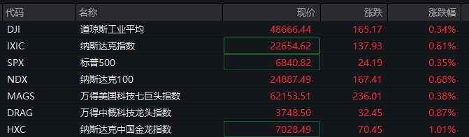 中概股普遍走高,纳斯达克中国金龙指数涨超1%。再鼎医药涨超4%,阿特斯太阳能、高途集团、迅雷、小马智行等涨超3%,网易、拼多多、百度集团涨超1%。