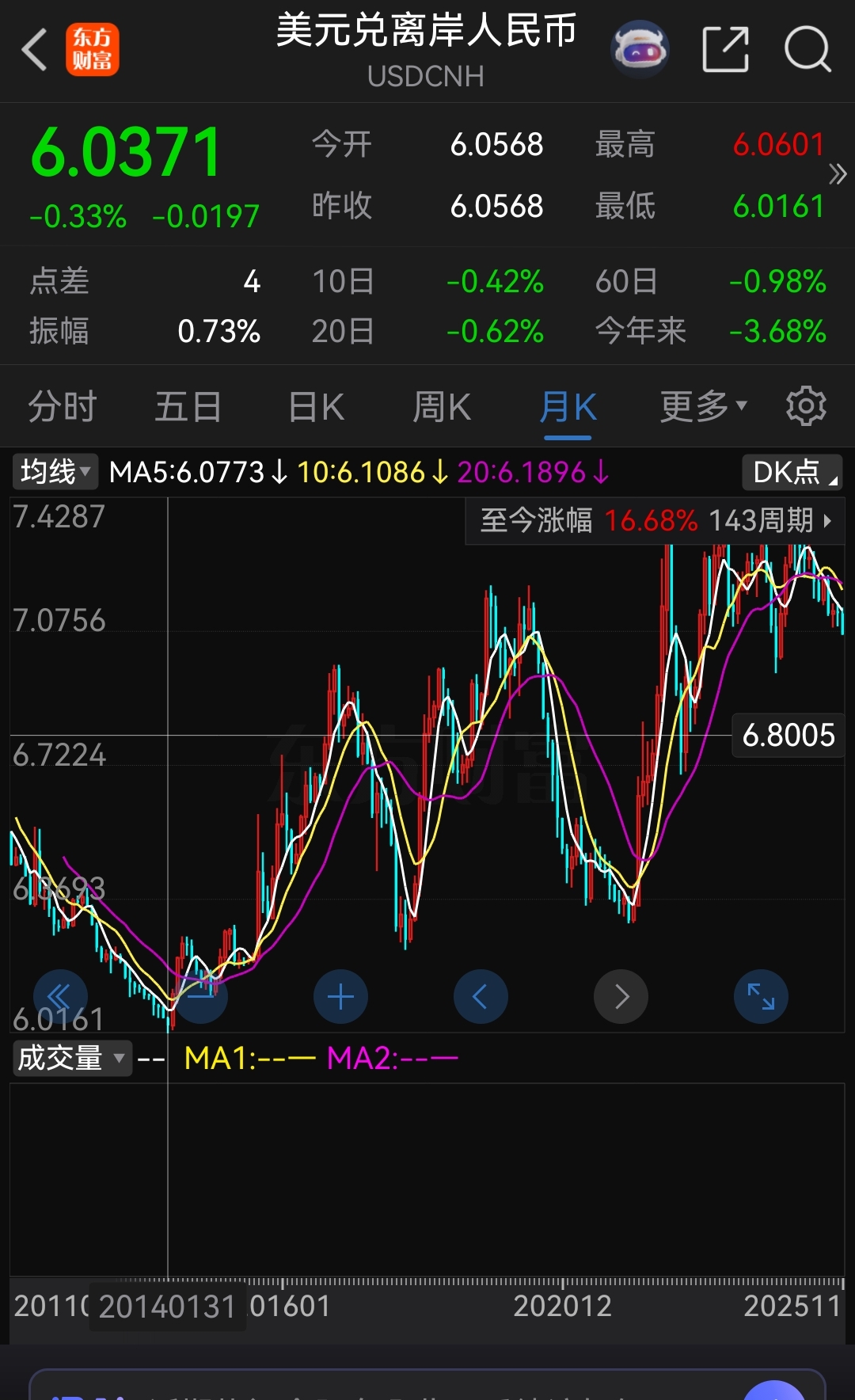 $美元兑离岸人民币(CNYOFFS|USDCNH)$ 2013年底