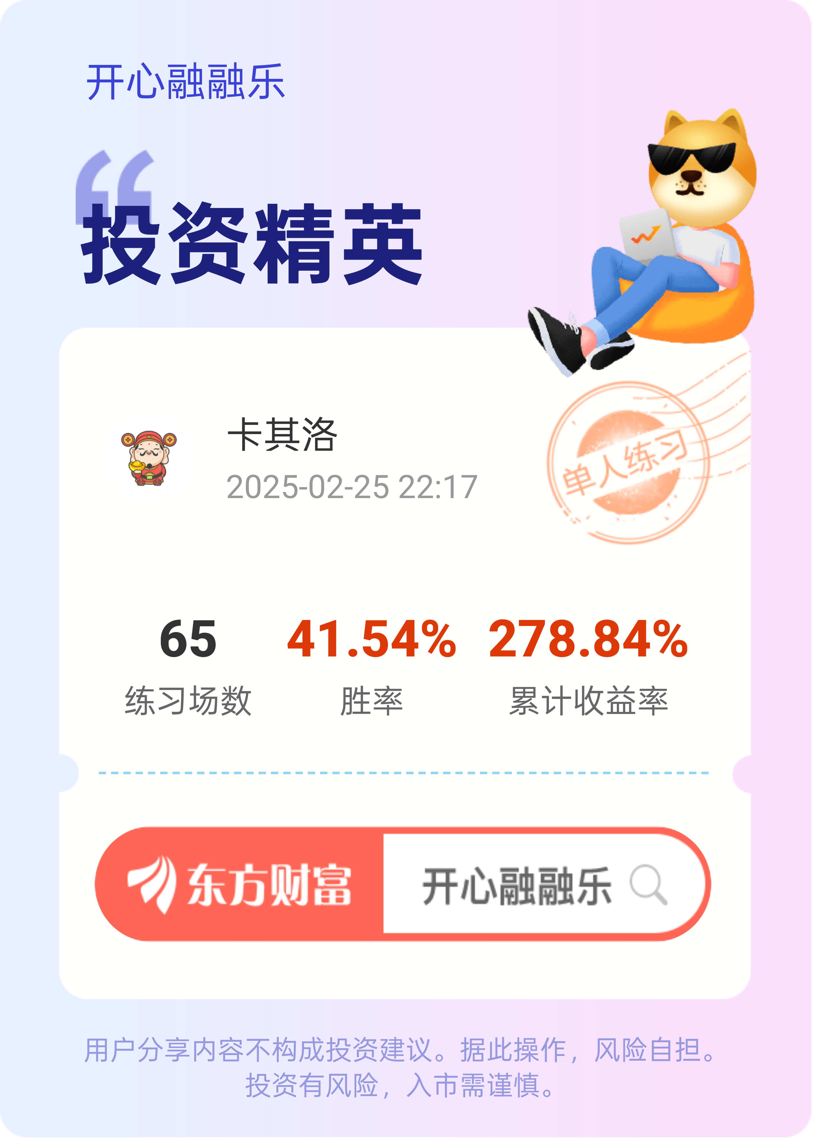 郑重声明:用户在财富号/股吧/博客等社区发表的所有信息(包括但不限于文字、视频、音频、数据及图表)仅代表个人观点,与本网站立场无关,不对您构成任何投资建议,据此操作风险自担。请勿相信代客理财、免费荐股和炒股培训等宣传内容,远离非法证券活动。请勿添加发言用户的手机号码、公众号、微博、微信及QQ等信息,谨防上当受骗!