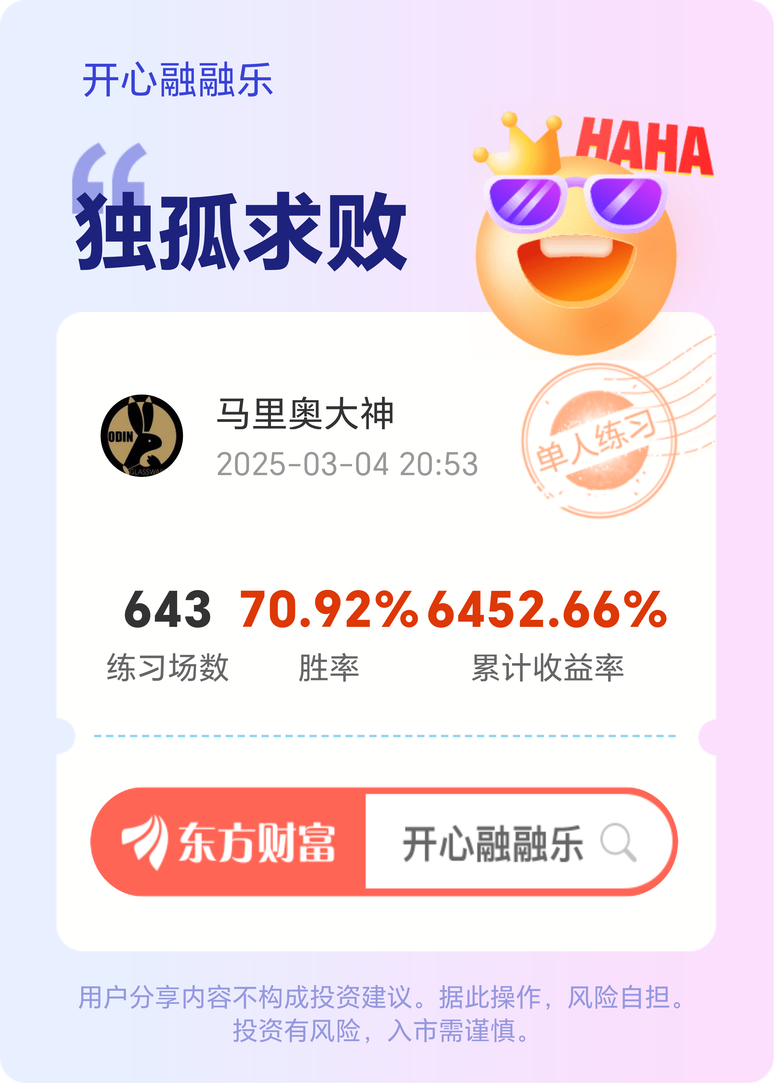 郑重声明:用户在财富号/股吧/博客等社区发表的所有信息(包括但不限于文字、视频、音频、数据及图表)仅代表个人观点,与本网站立场无关,不对您构成任何投资建议,据此操作风险自担。请勿相信代客理财、免费荐股和炒股培训等宣传内容,远离非法证券活动。请勿添加发言用户的手机号码、公众号、微博、微信及QQ等信息,谨防上当受骗!